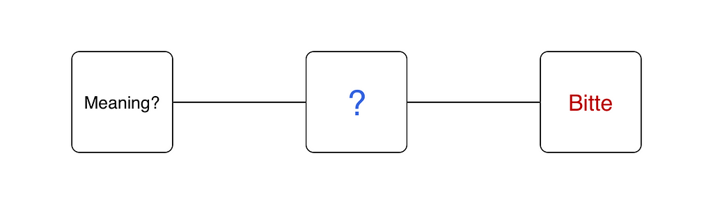 However, many other words are not so simple as “Table”. For instance, “Bitte” is a complex German word, it could mean “please”, “you’re welcome”, or “wish” as a noun. If we learn “Bitte” the same way as we learn “Table”, we might want to find the “meaning” of “Bitte” and look for its counterpart in English.